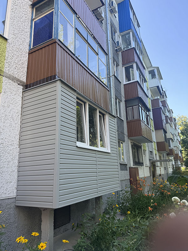Внешняя декоративная обшивка балкона сайдингом, ПВХ панелями, металлопрофилем